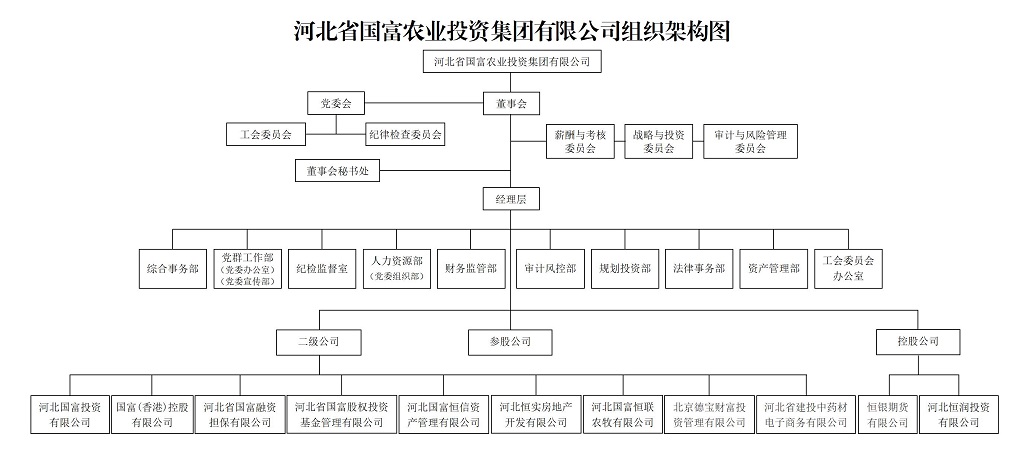 河北省國富農(nóng)業(yè)投資集團有限公司成立于1992年,前身為河北省經(jīng)濟開發(fā)投資公司。2001年11月,經(jīng)河北省人民政府批準,重組設立為河北省國富農(nóng)業(yè)投資集團有限公司,注冊資本3.34億元。2017年3月,按照省政府安排全面劃轉至省國資委管理,是河北省國資委授權的競爭類國有資產(chǎn)授權經(jīng)營機構。2024年7月,經(jīng)省委、省政府同意,省國資委決定將河北國富投資劃轉至河北建投集團管理。