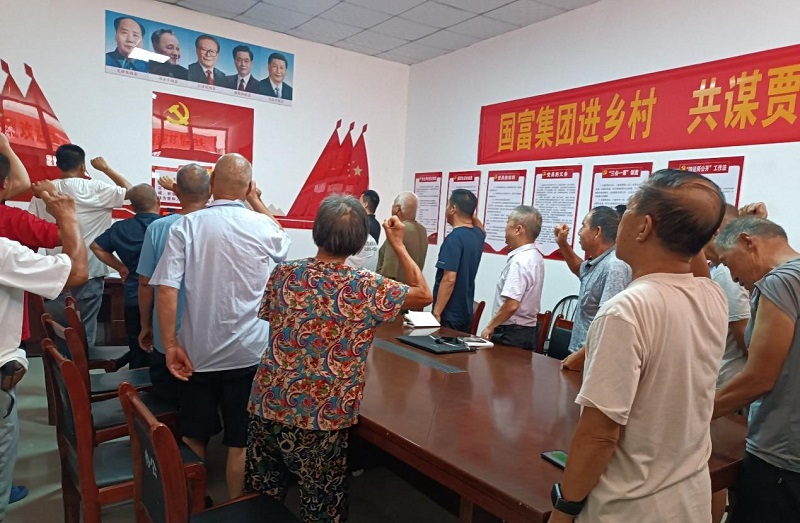 7月23日,國富集團(tuán)駐邯鄲市曲周縣賈莊村下沉工作隊(duì)組織召開賈莊村“深學(xué)細(xì)悟強(qiáng)黨性 知行合一勇作為”為主題的七月黨日活動(dòng)會(huì),全體黨員面向國旗,用嘹亮的歌聲表達(dá)了對(duì)祖國的熱愛與忠誠,并重溫了入黨誓詞,通過莊嚴(yán)的宣誓,再次堅(jiān)定了黨員們的初心和使命。