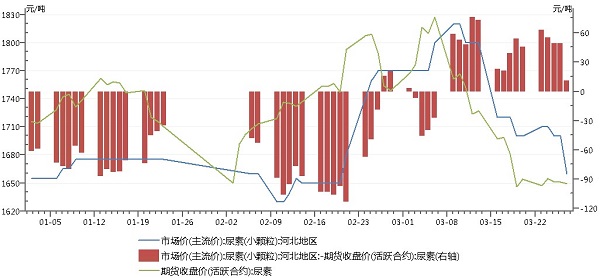 期貨方面,在經歷了兩周的大幅下跌之后,本周尿素期貨逐步止跌企穩(wěn),主力UR2005合約基本圍繞著1650元/噸一線上下20元窄幅波動。雖國外疫情延續(xù)快速蔓延態(tài)勢,宏觀風險猶存,但各國與國際組織陸續(xù)出臺相關經濟刺激政策,市場恐慌情緒有所緩解,包括尿素在內的多數(shù)工業(yè)品價格止跌企穩(wěn),但受累于當前相對疲軟的基本面,尿素期貨反彈動能仍顯不足,期價呈現(xiàn)低位震蕩格局。