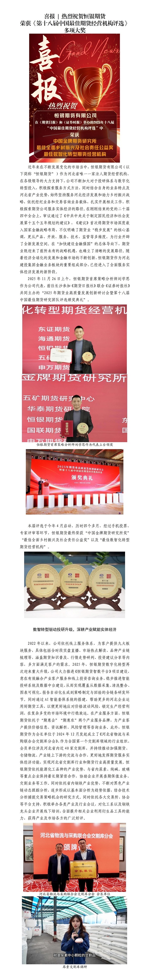 喜報(bào) | 熱烈祝賀恒銀期貨榮獲《第十八屆中國最佳期貨經(jīng)營機(jī)構(gòu)評(píng)選》多項(xiàng)大獎(jiǎng)