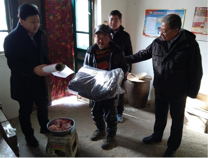2020年1月8日,國富投資集團黨委副書記韓繼普、副總經理邸智彬帶領黨員志愿者,驅車兩個多小時,來到保定市唐縣北店頭鄉(xiāng)西同龍村,開展春節(jié)前夕送溫暖活動,將暖暖情誼和深深祝福送給貧困戶。