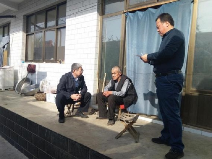 韓繼普副書記與貧困戶葛義志促膝交談,關(guān)心老人的身體健康狀況,詢問(wèn)冬季取暖情況,宣講黨的政策,并叮囑老人保重身體。